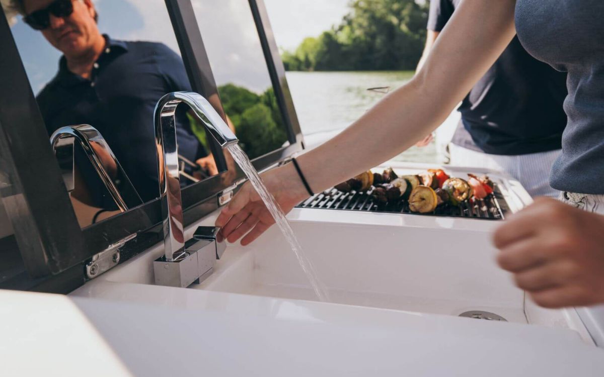 From sunset onward, become the beacon of the party with spectacular lighting that emerges from underwater on your boat.